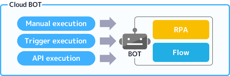 In Cloud BOT, both RPA and Flow are treated as "BOTs."