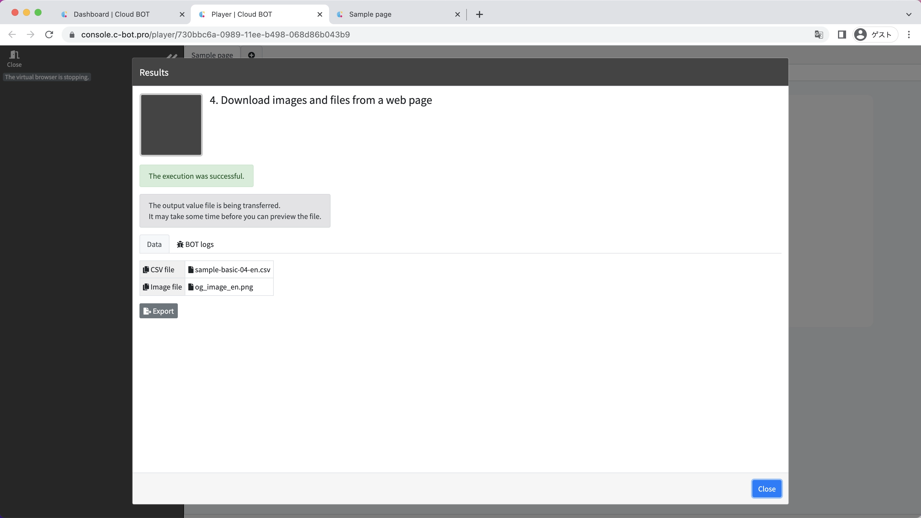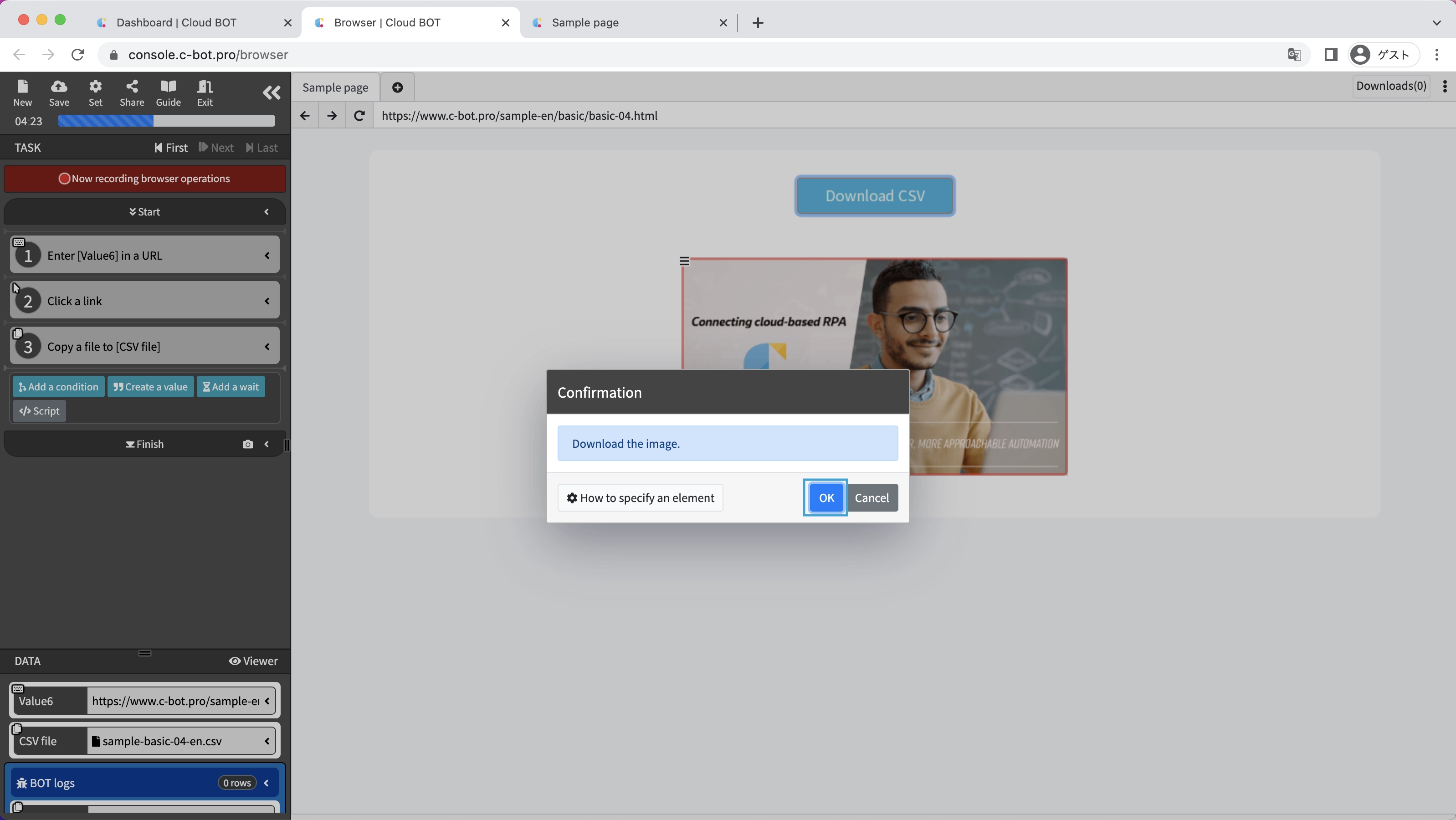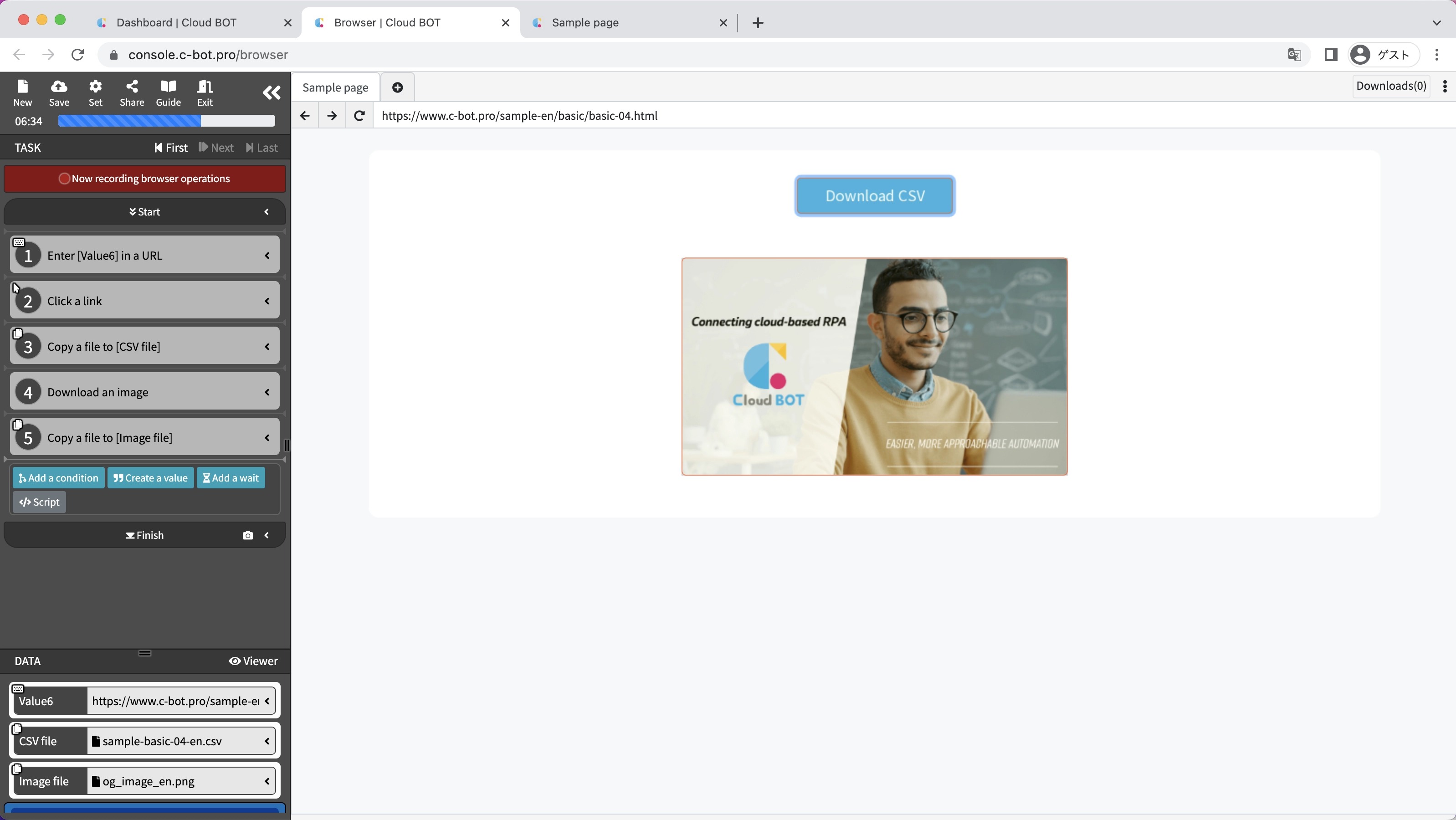 *For basic operations of Cloud BOT, please refer to Basics - Chapter 1-1. Acquiring data from web pages (including an explanation of basic operations).