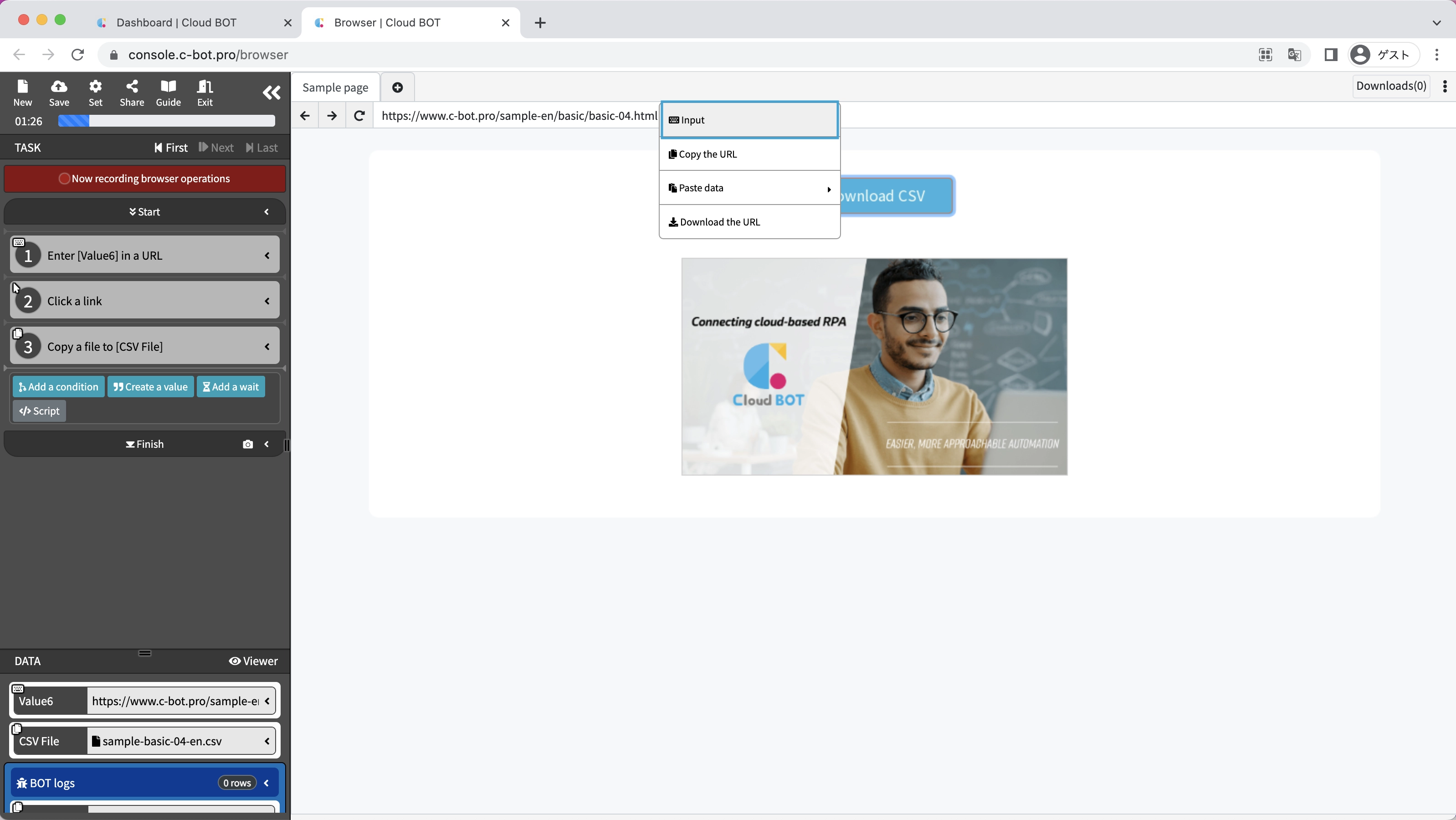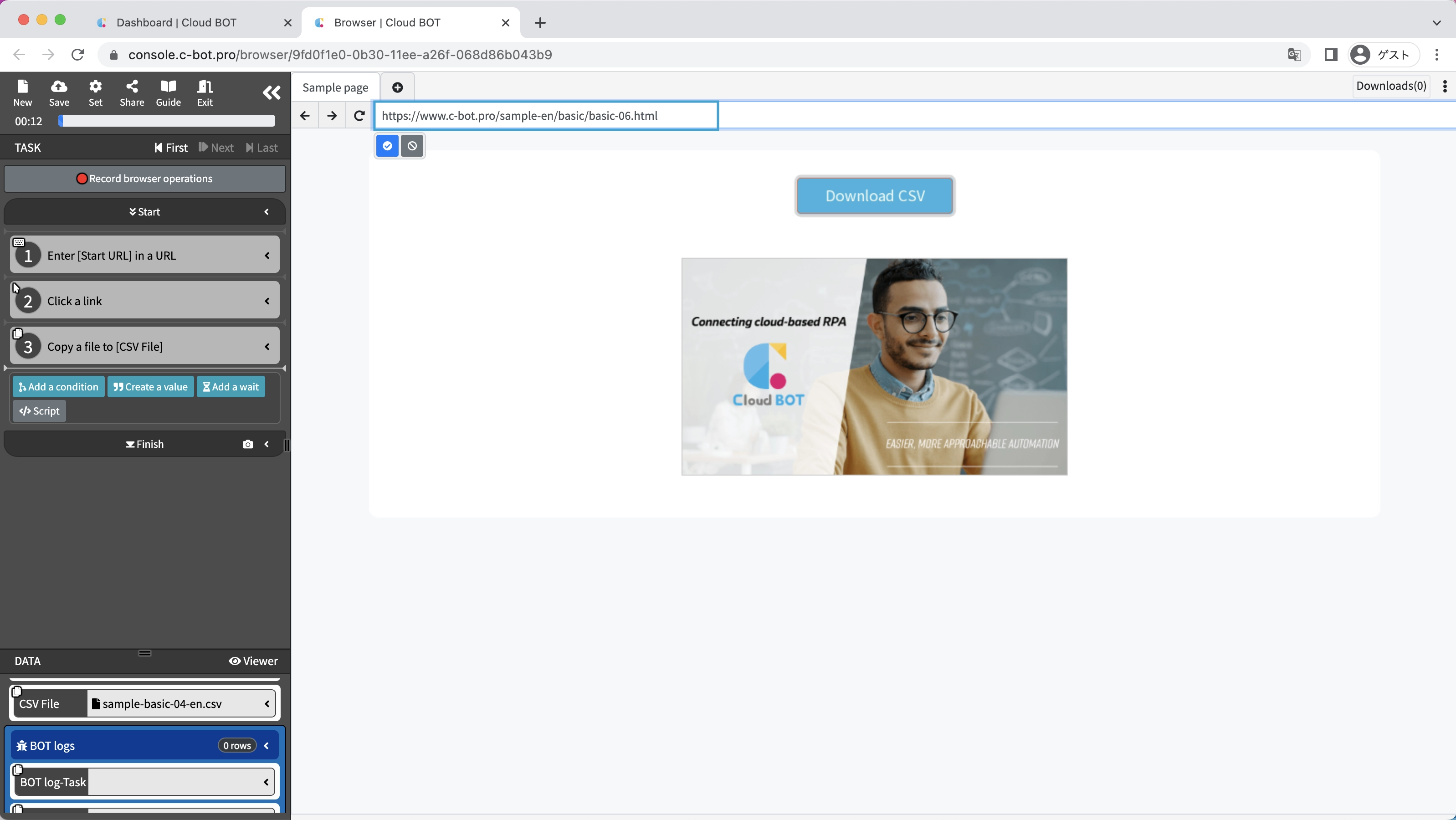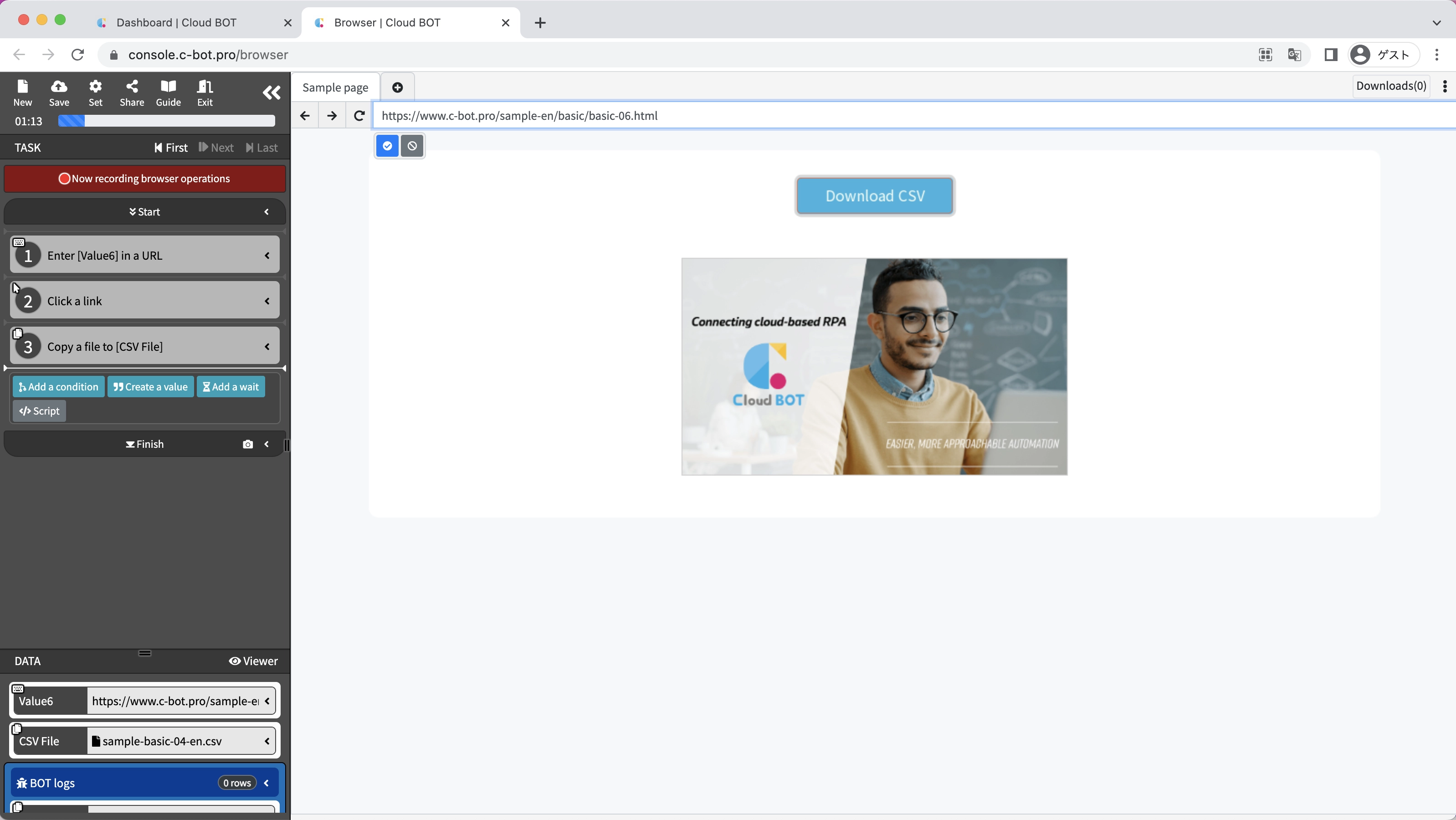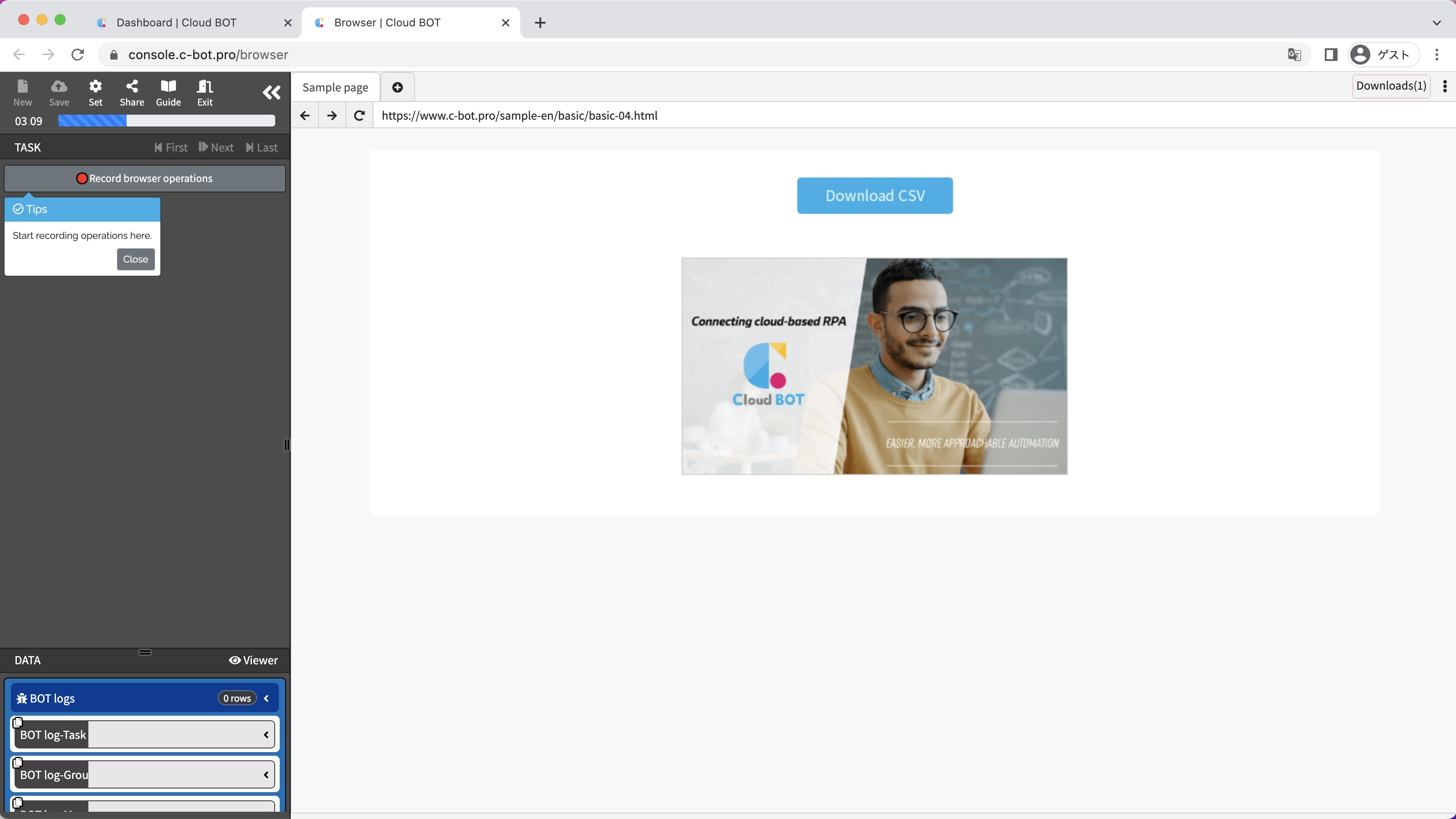 Click the "Download CSV" button and record the operation of copying the downloaded file as BOT data.