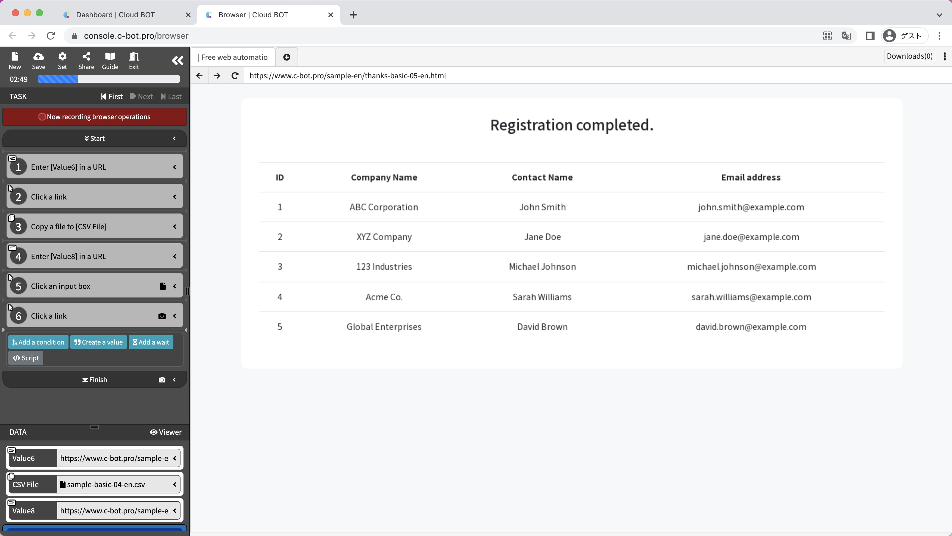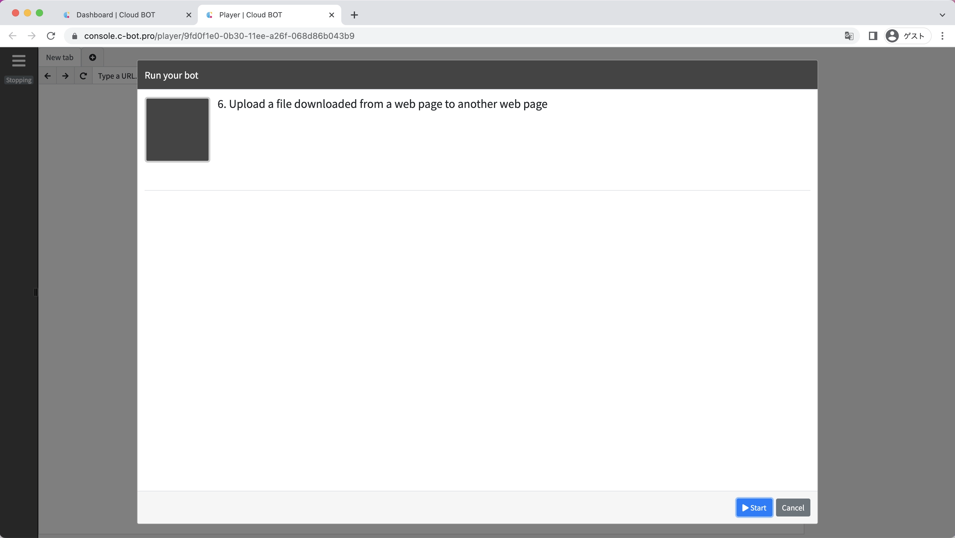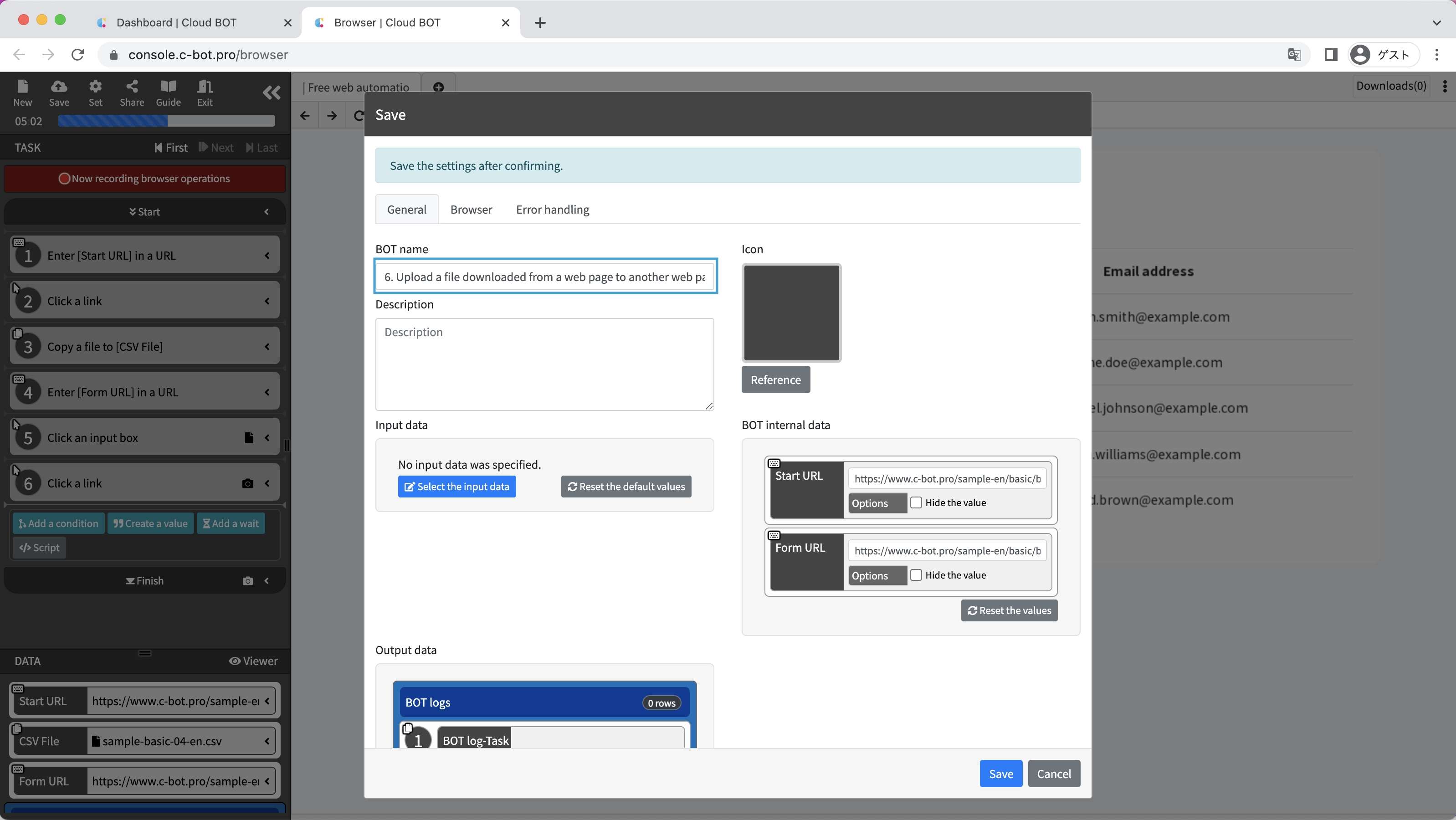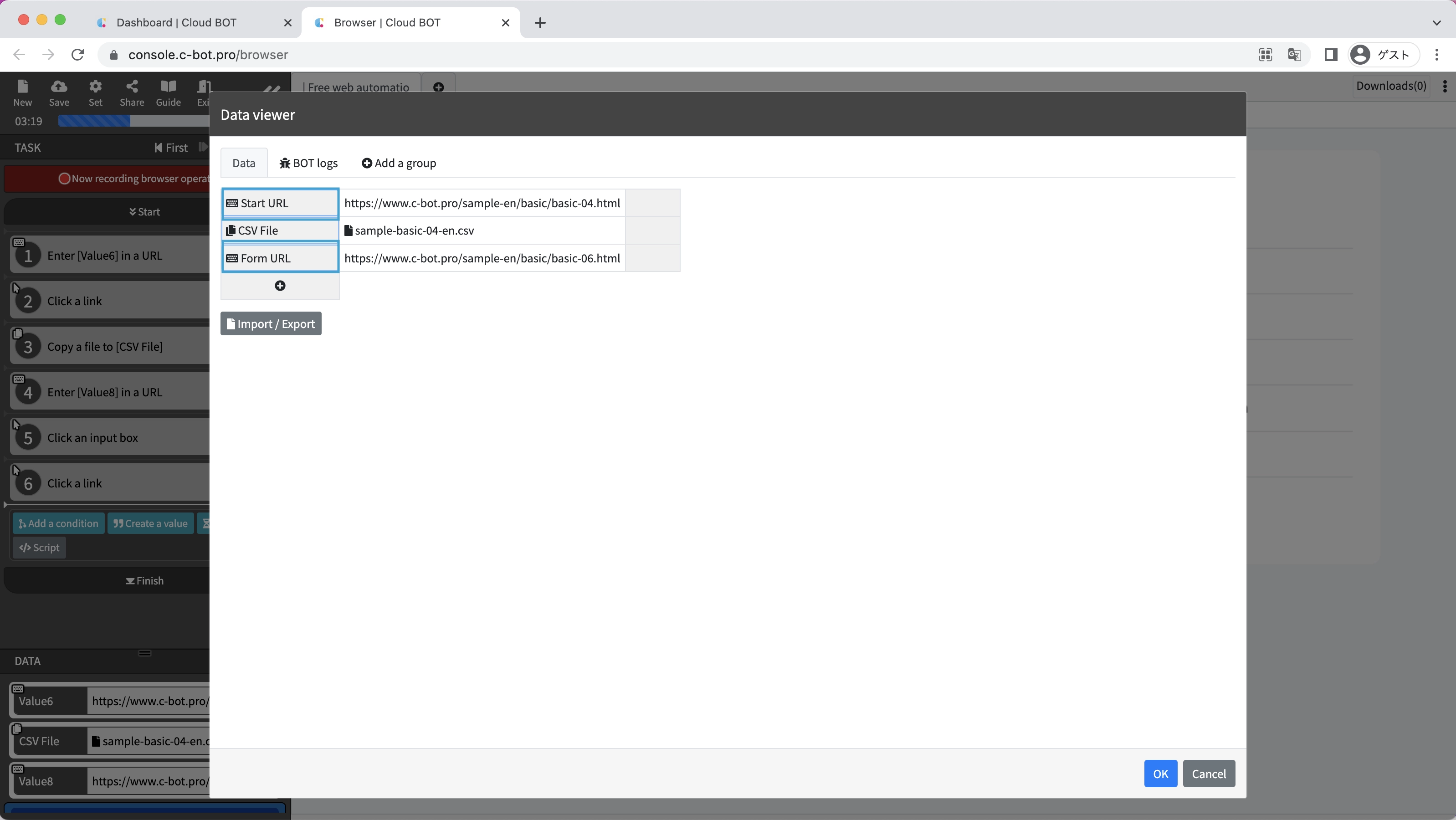 *For basic operations of Cloud BOT, please refer to Basics - Chapter 1-1. Acquiring data from web pages (including an explanation of basic operations).
