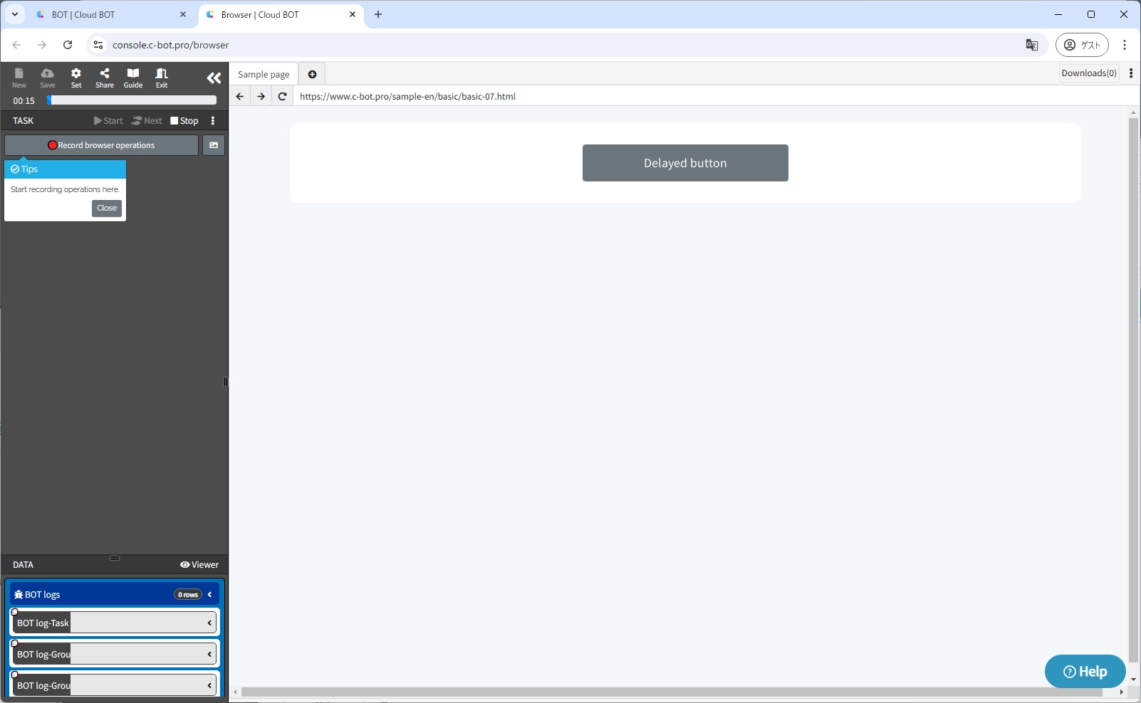 Starts recording operations and records operations that click the "Delayed button".