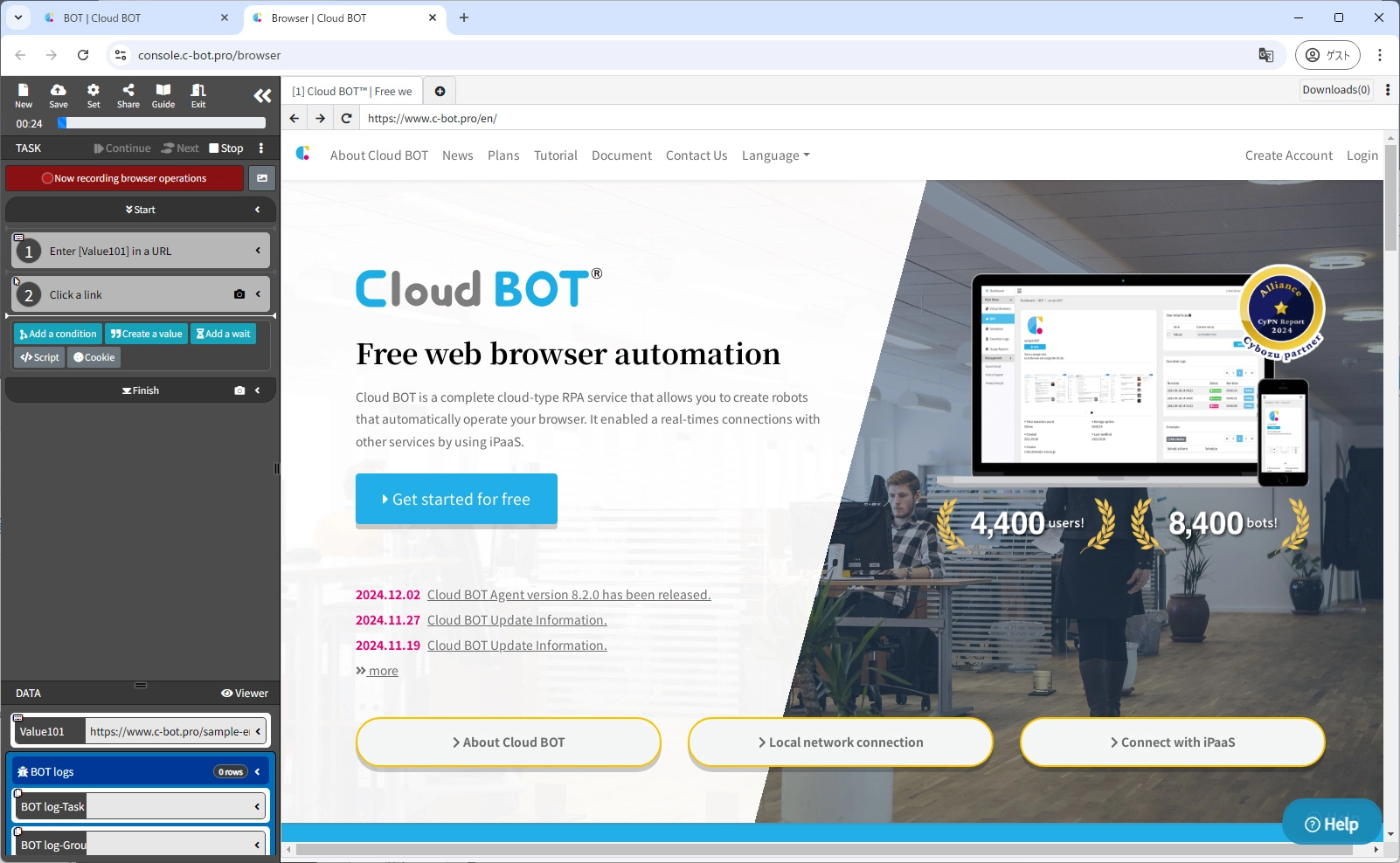 When the BOT execution is completed, the execution result will be displayed.