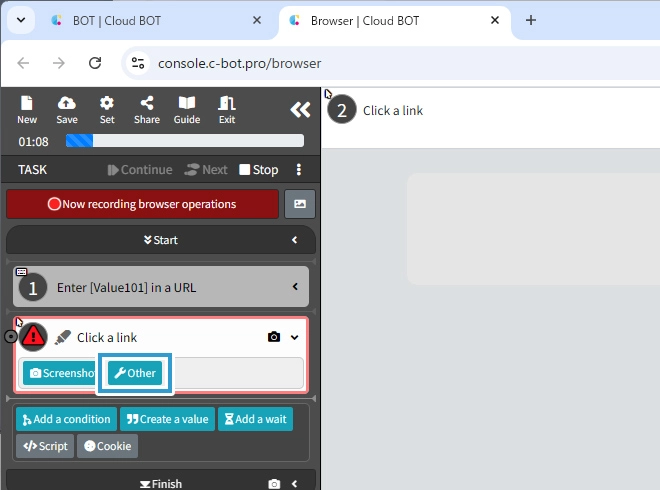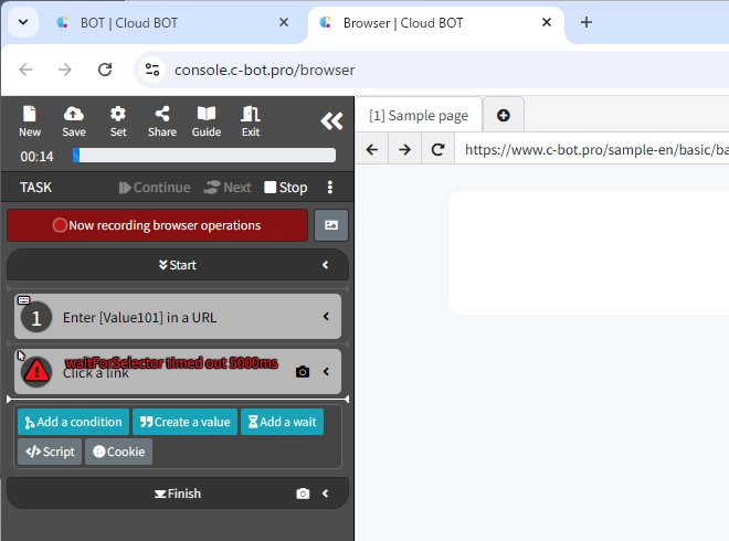 Go to the next tutorial >> 1-8. About the settings when an error occurs in a task