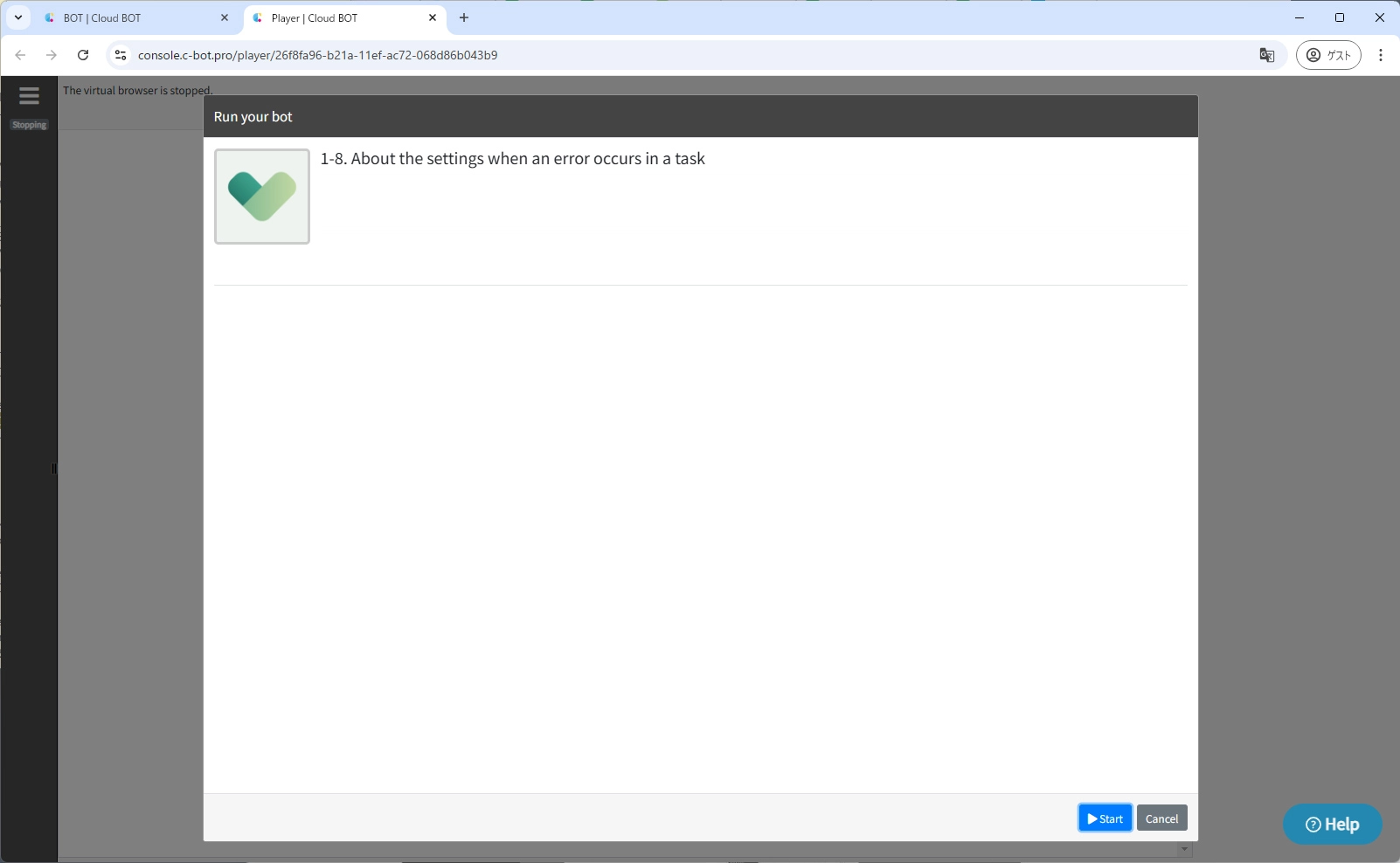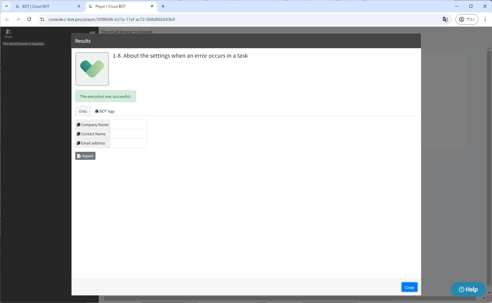 This concludes the tutorial “1-8. About the settings when an error occurs in a task”.