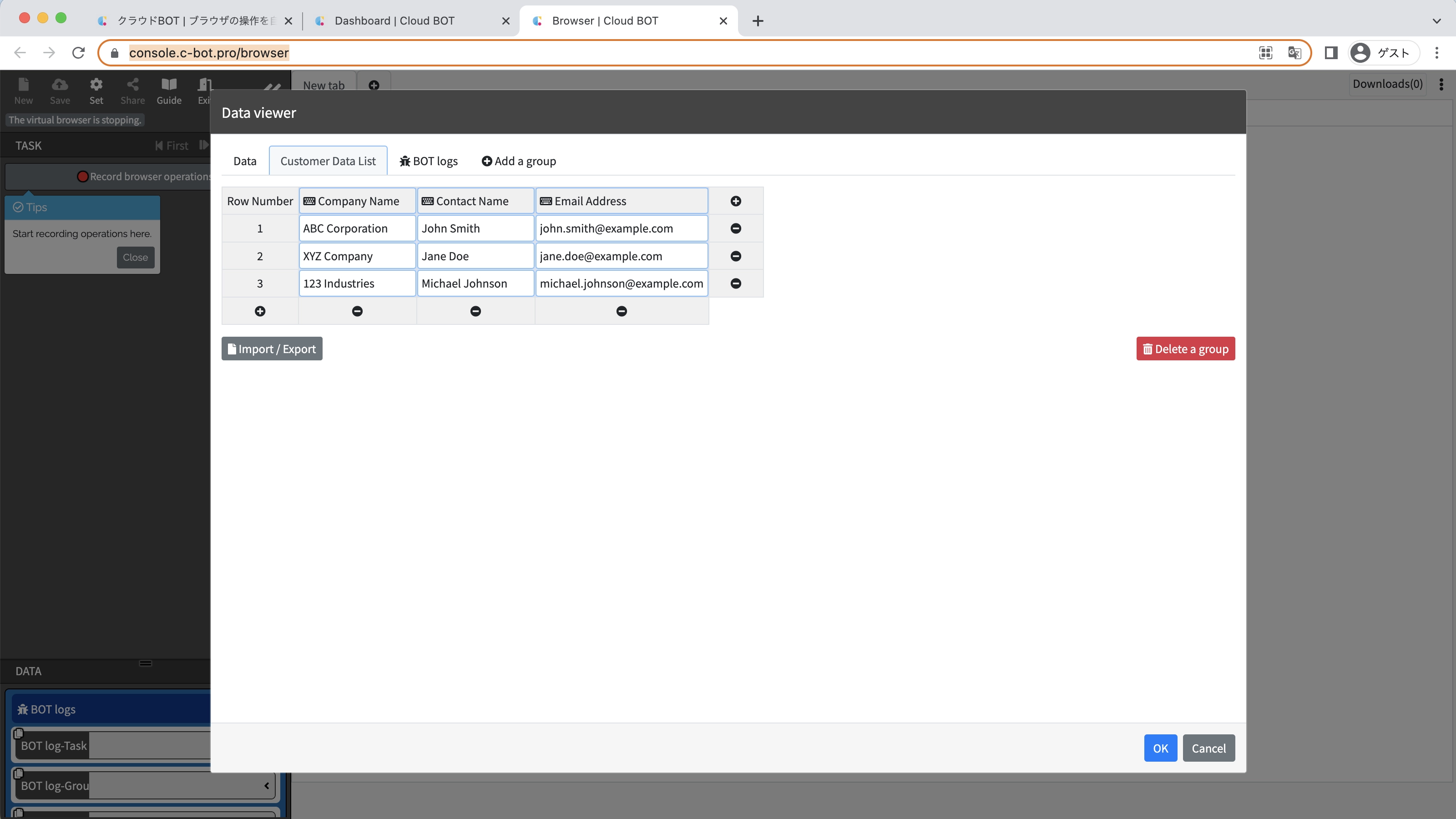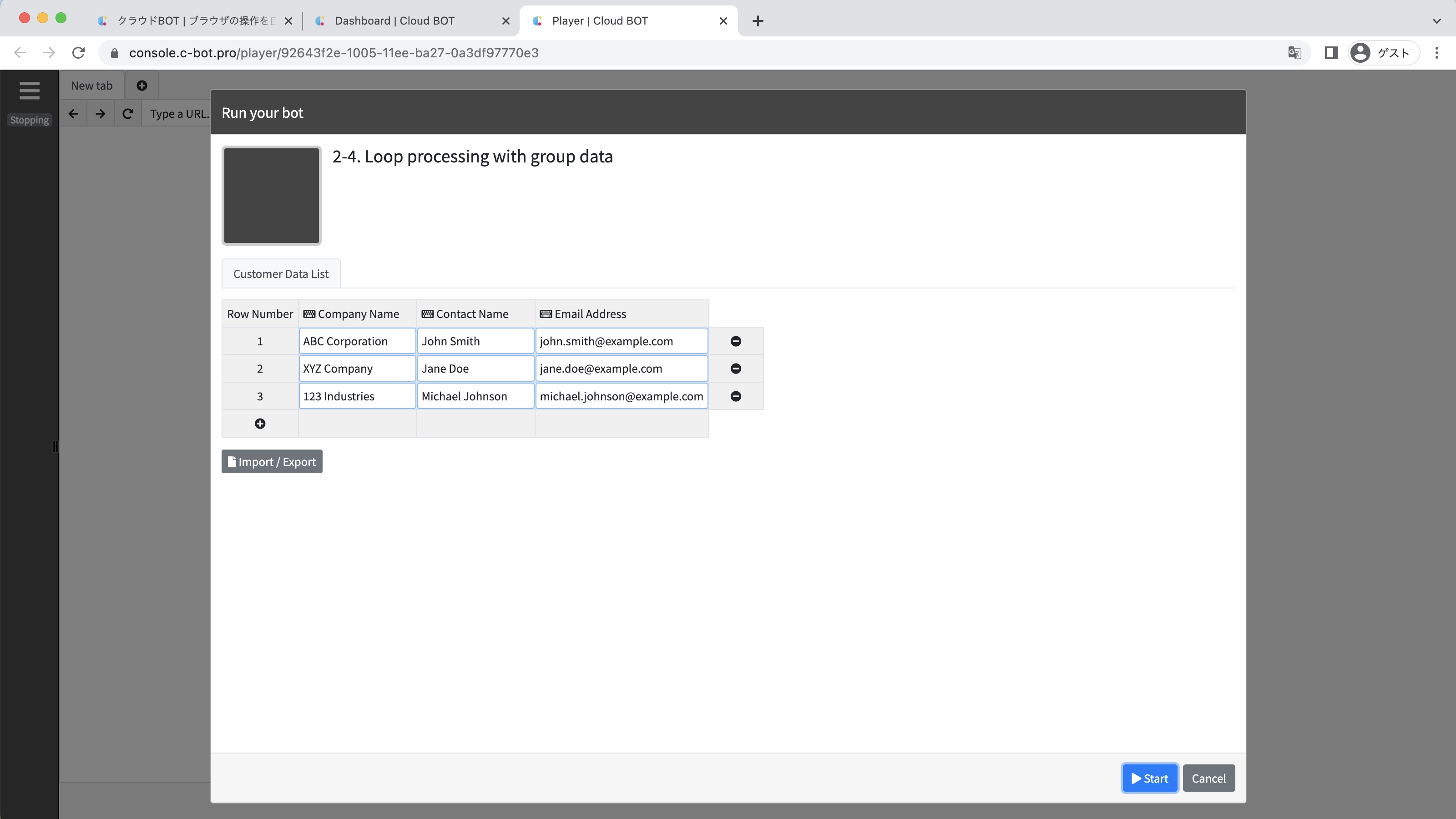 Change the "BOT Name" to 2-4. Loop processing with group data.