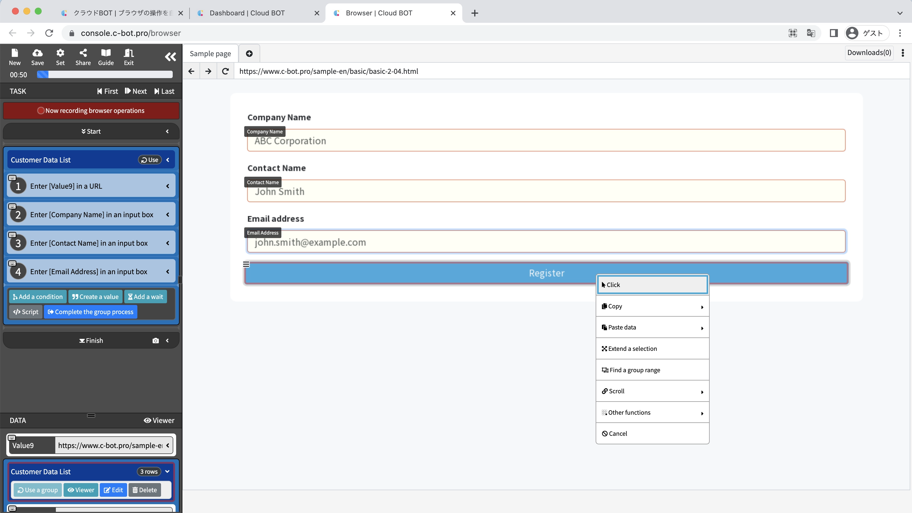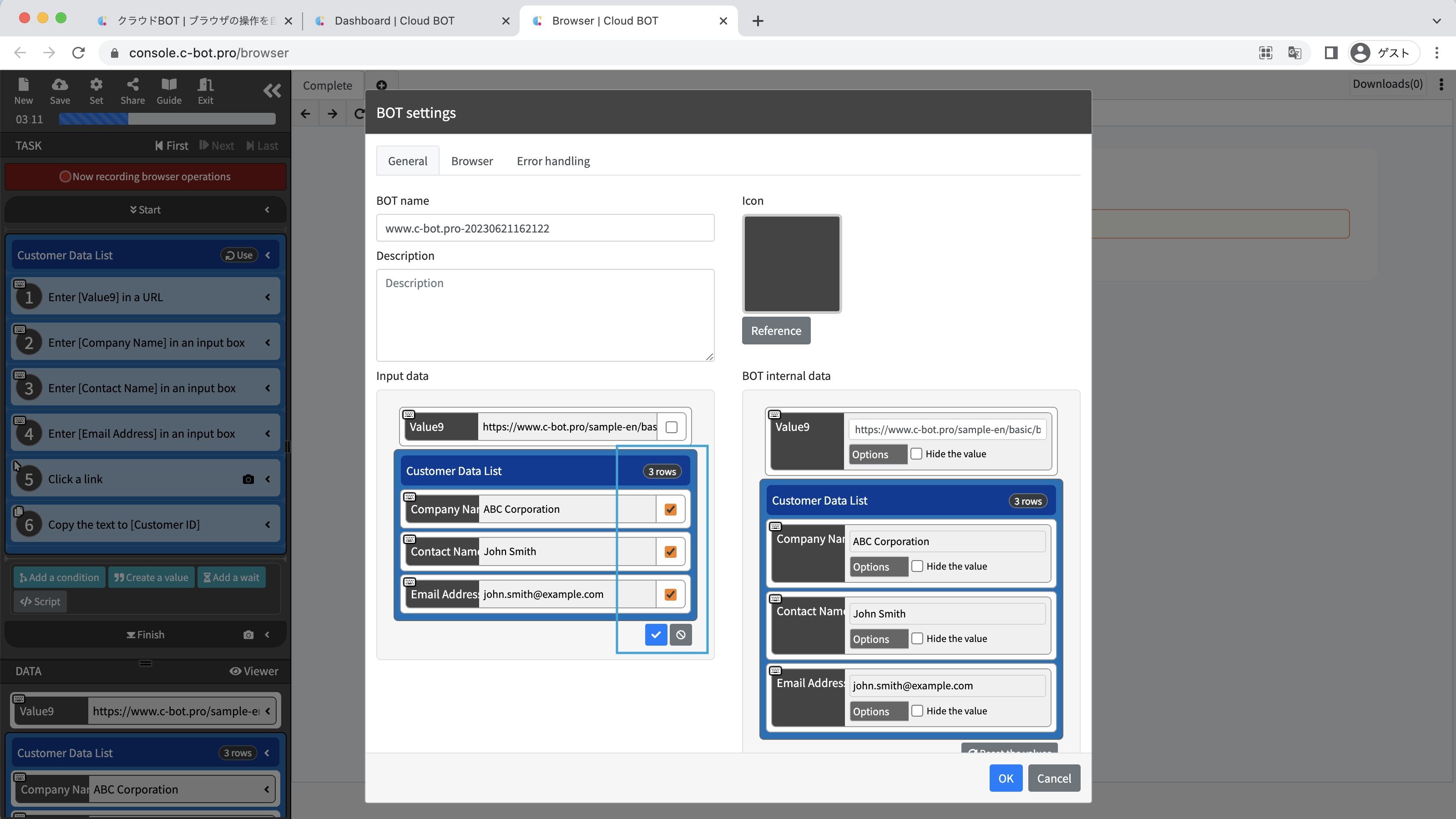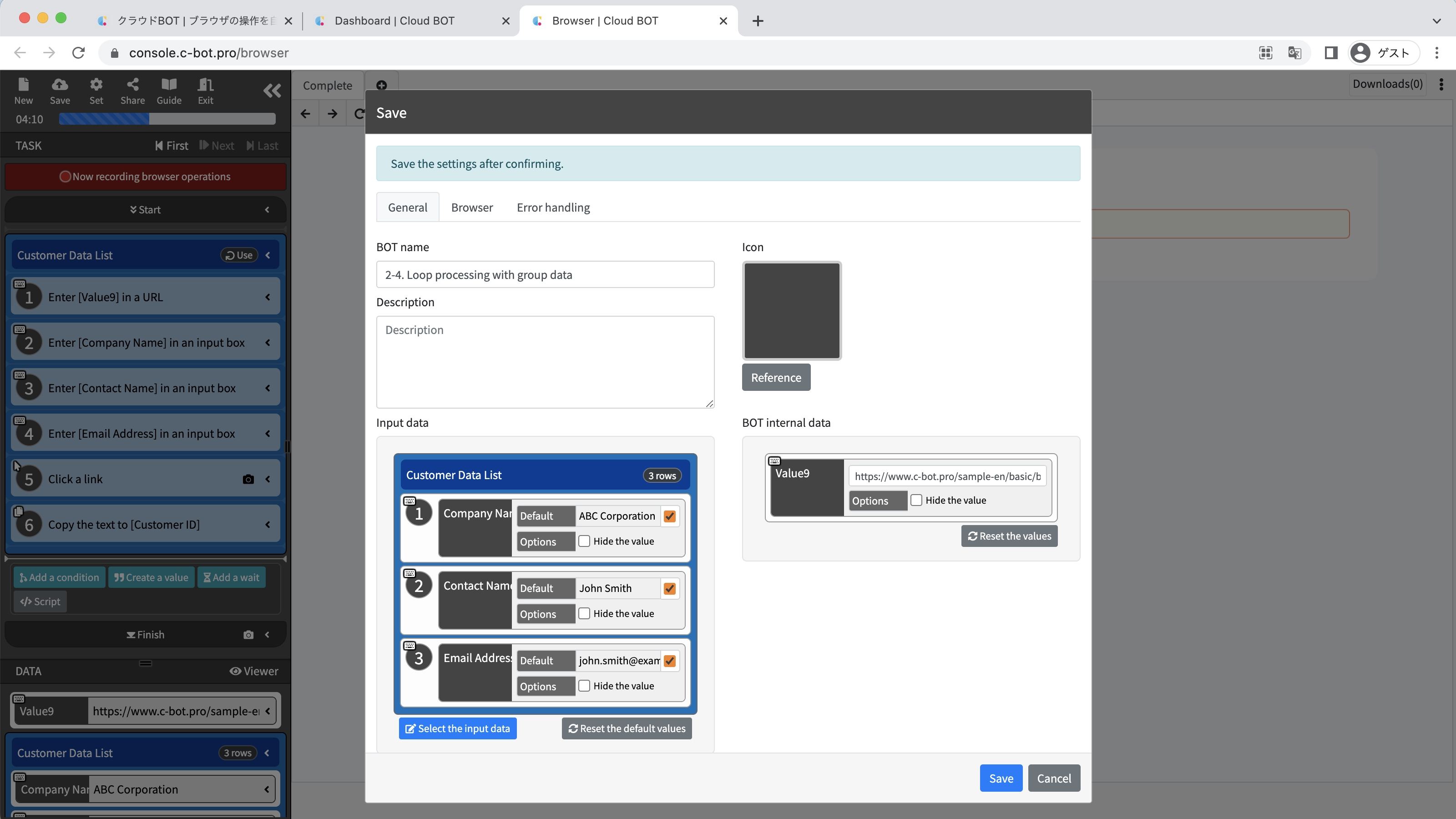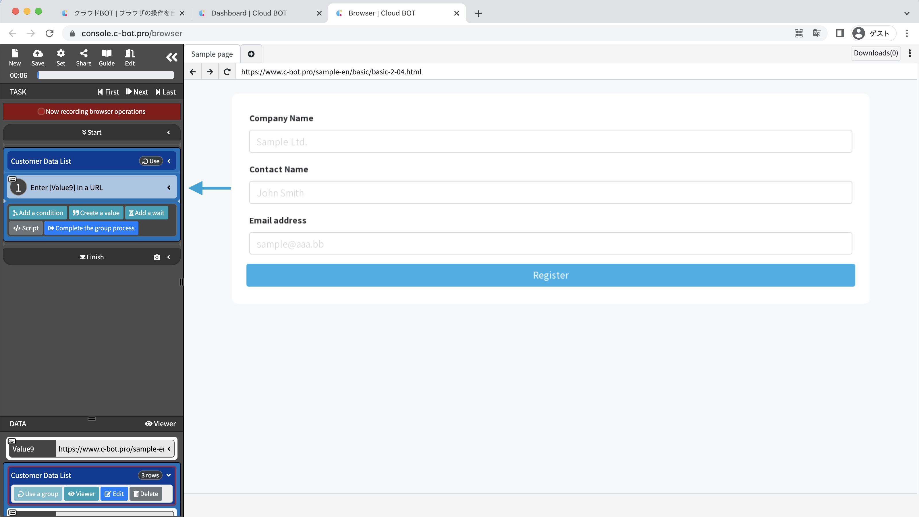 *For basic operations of Cloud BOT, please refer to Basics - Chapter 1-1. Acquiring data from web pages (including an explanation of basic operations).