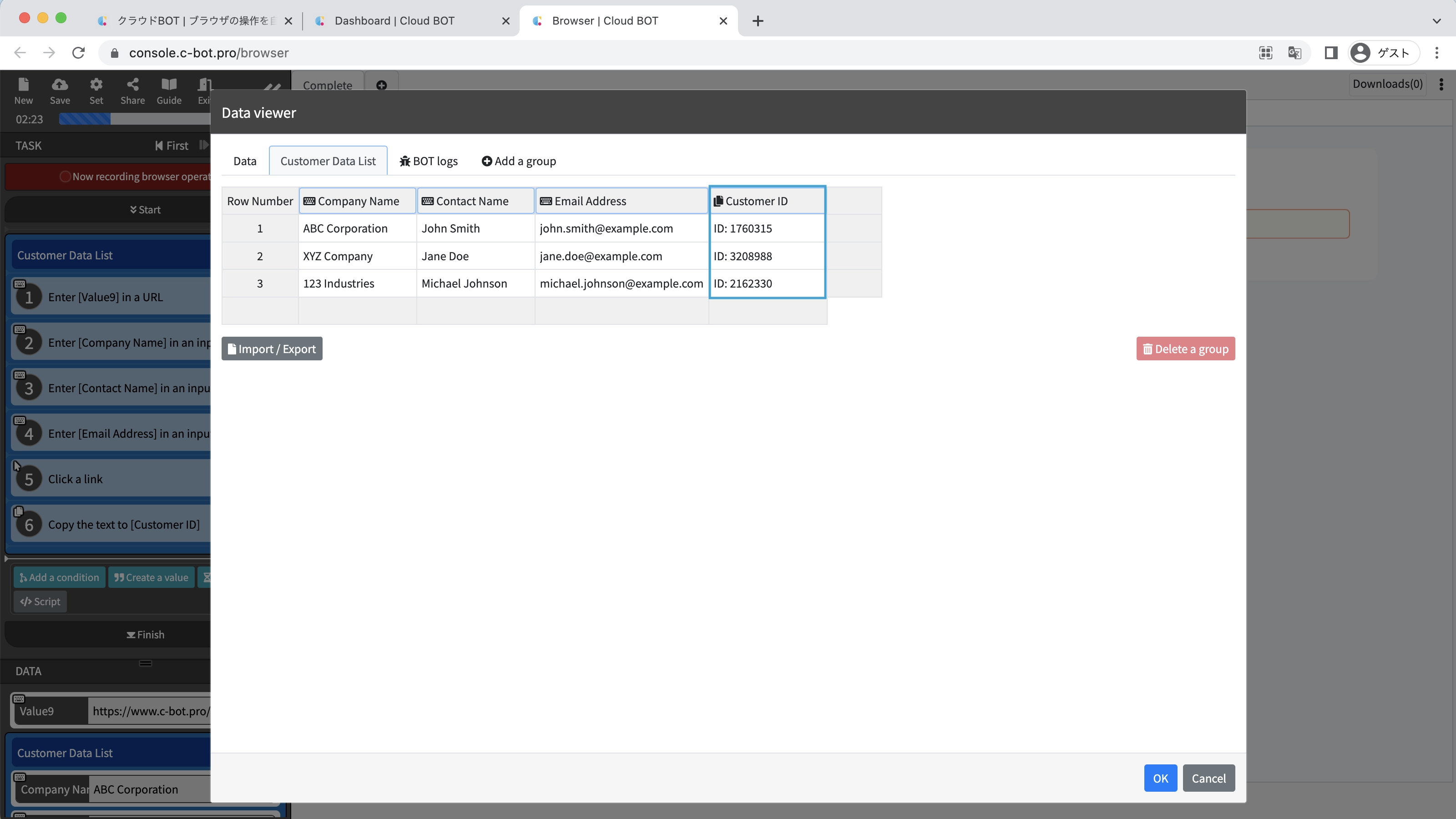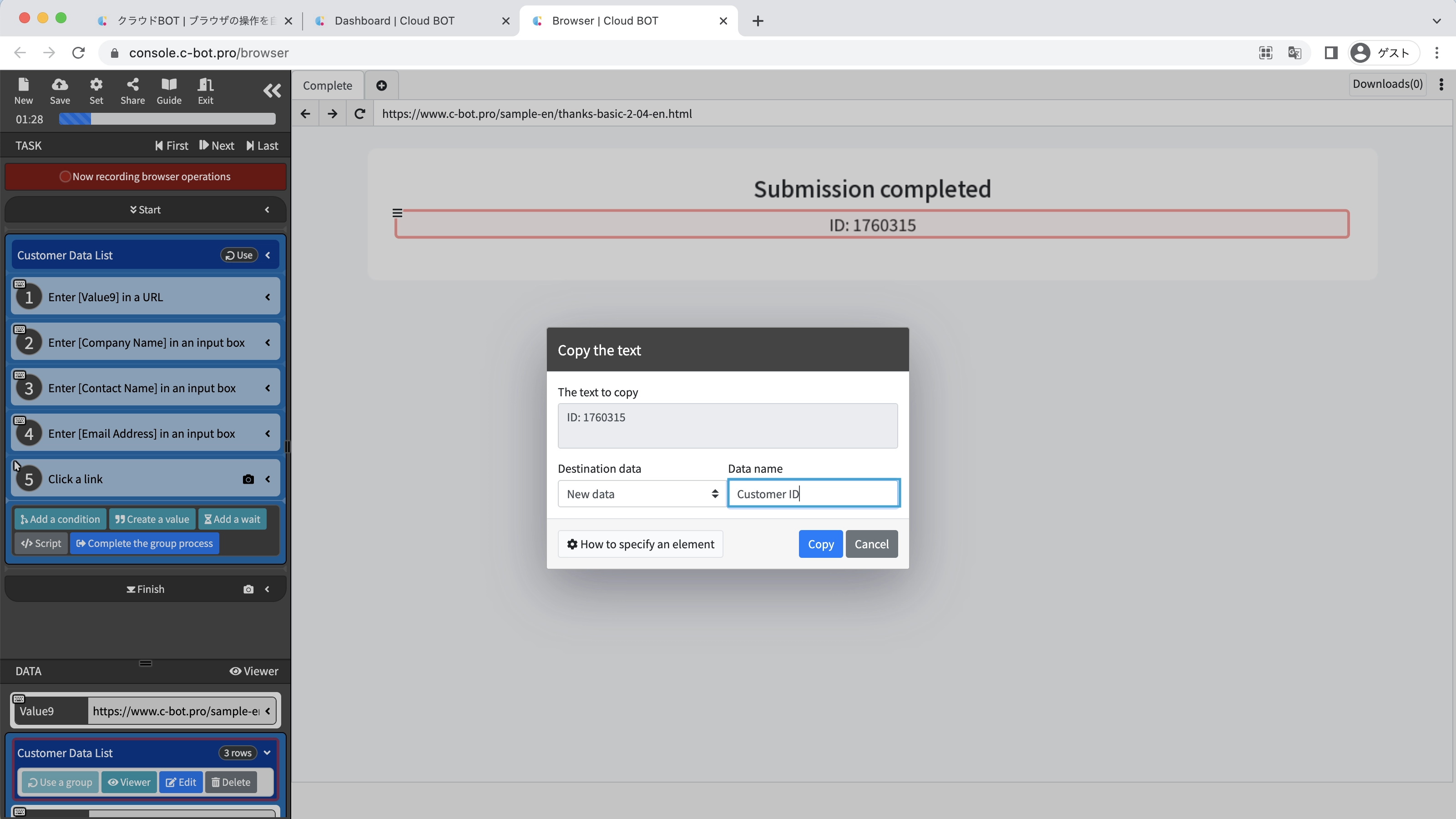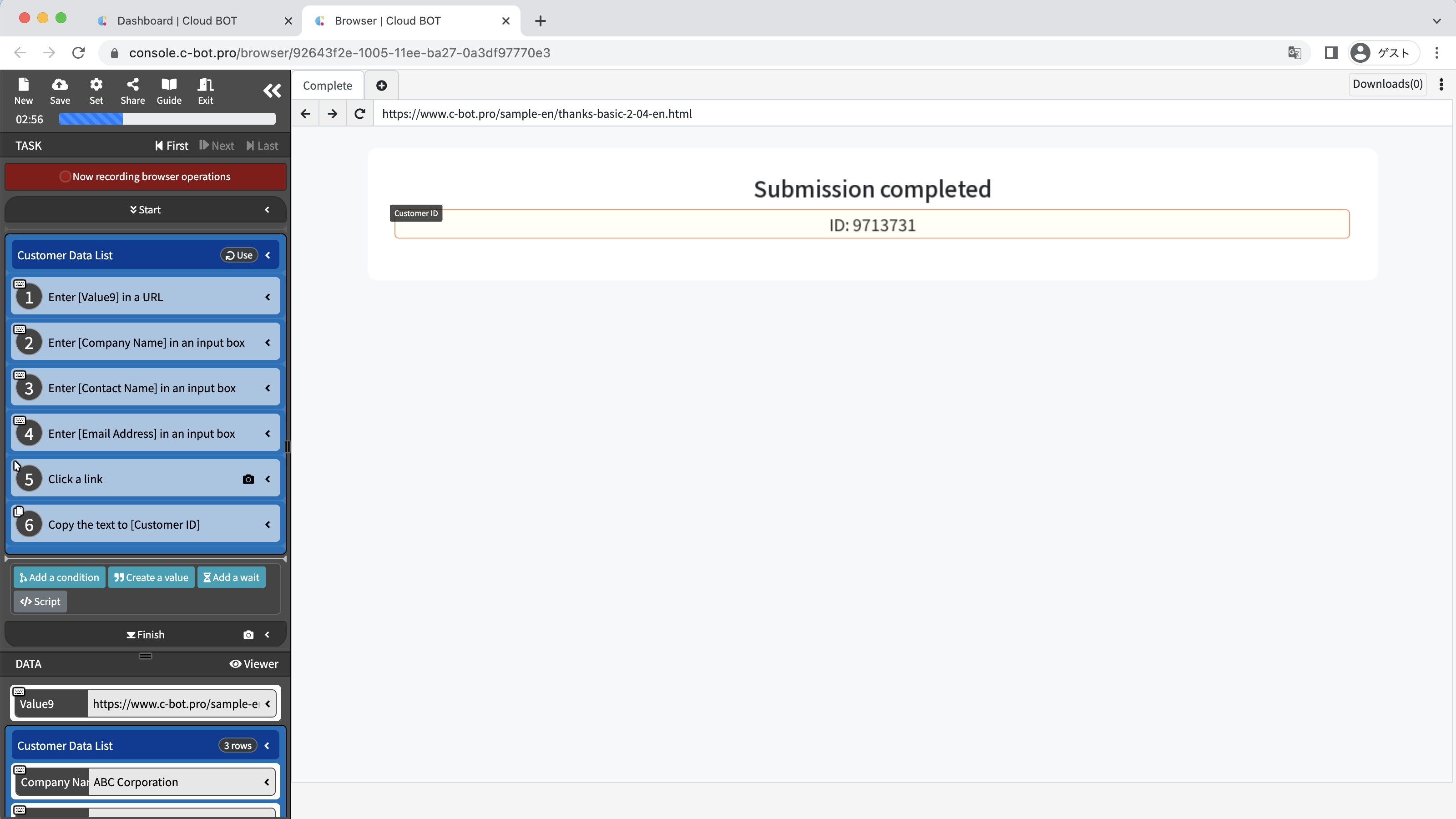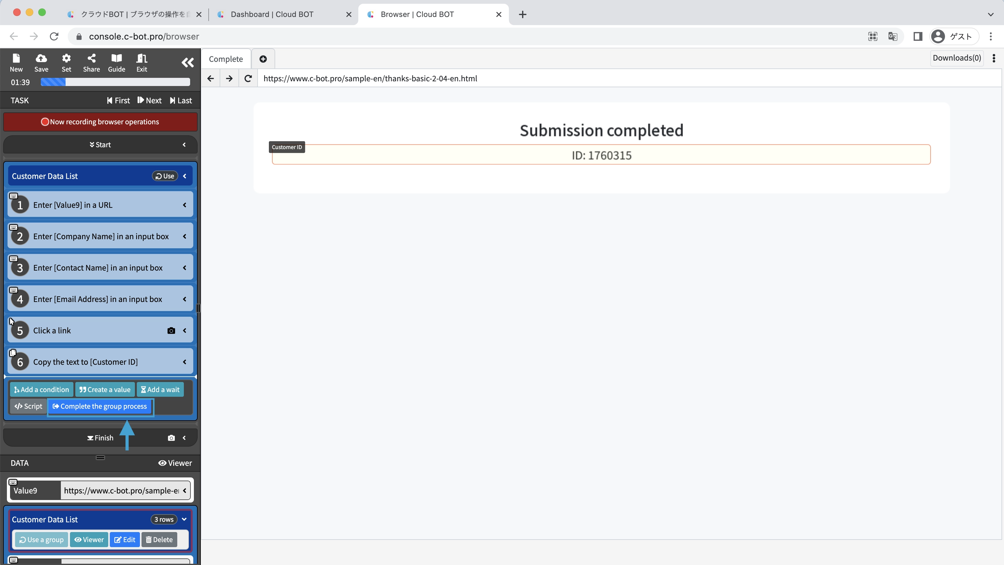You can confirm that the "customer ID" obtained in the repeated process has been added.