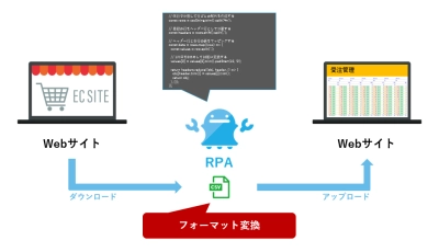 この自動化で稀に発生する問題が、取り込めるCSVのフォーマットがWebサイトによって異なる場合です。RPAによってCSVファイルをダウンロードした後、フォーマット変換が必要になると、自動化の難易度が格段に上がります。RPAによっては、ノーコードでの実装が困難になり、部分的にプログラムコードが必要になるケースもあります。