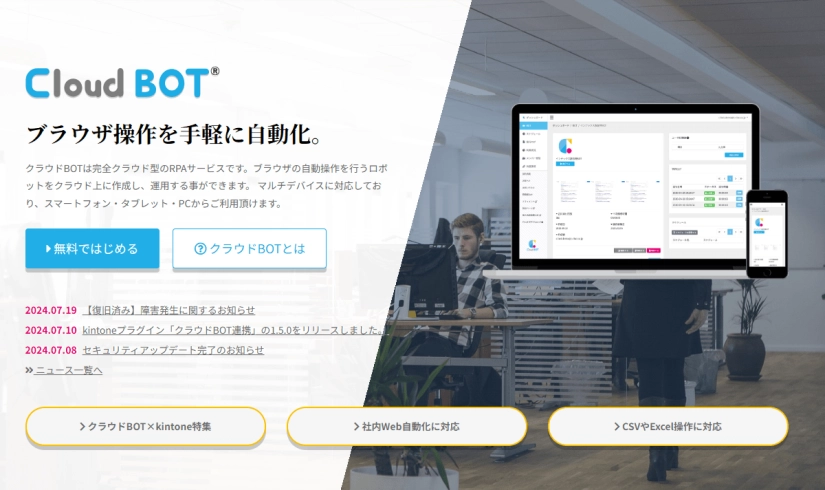 クラウドBOTはブラウザ操作を自動化できるクラウド型のRPAサービスです。