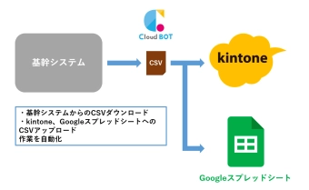 毎日、基幹システムからCSVをエクスポートし、kintoneへインポートする作業をBOTが自動で実行しています。