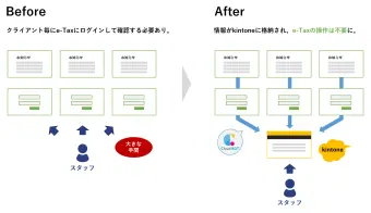 山田様:この業界では毎月ルーティンとして発生している作業が多数あります。中でも一番の手間は、クライアント1社1社の税に関する通知を e-Tax、eL-Tax にログインして取りにいかないといけない部分です。