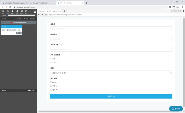 「ブラウザ操作を記録する」ボタンをクリックした後、以下の手順で操作の記録を行います。