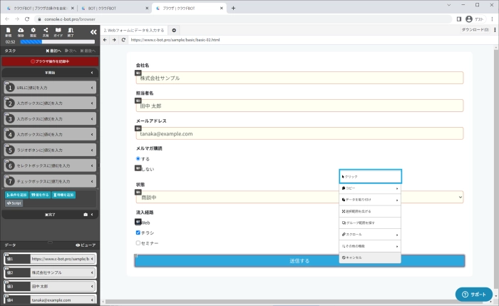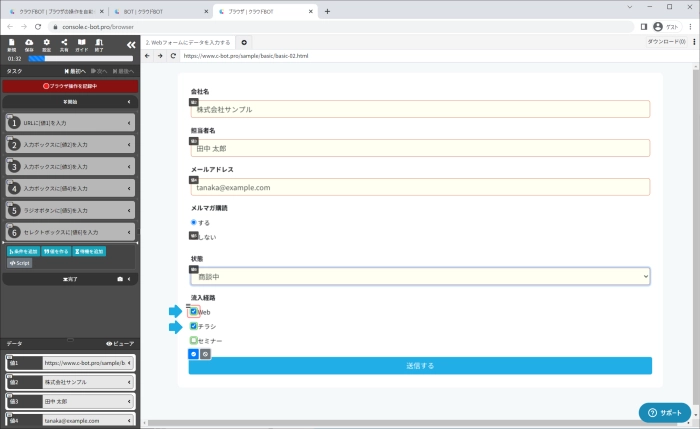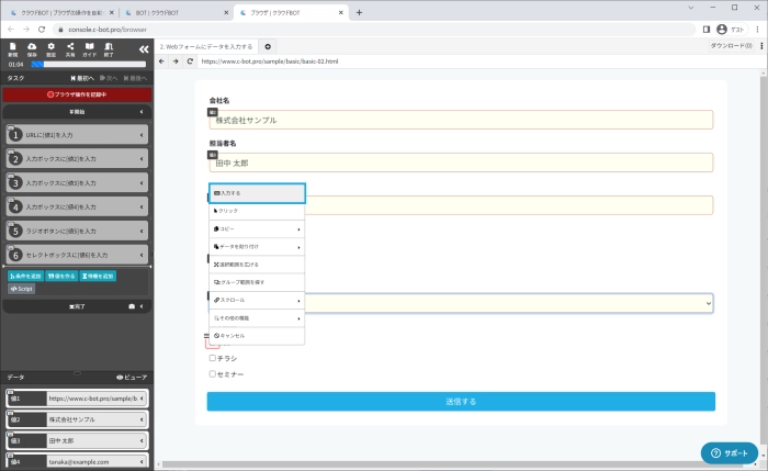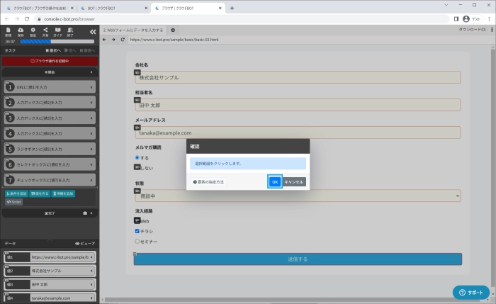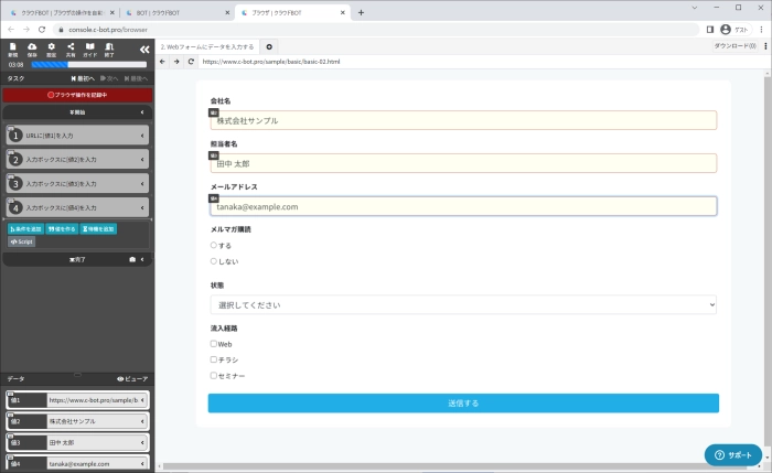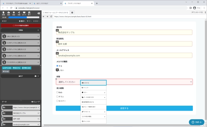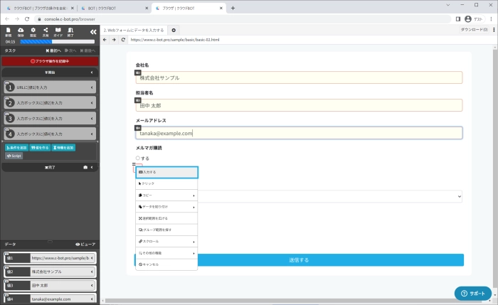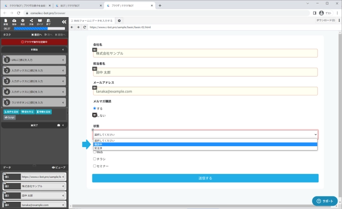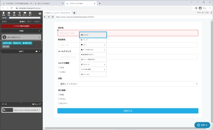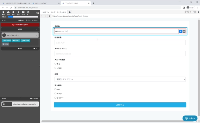 Webページ上のフォームにデータを入力し、送信するBOTを作成します。