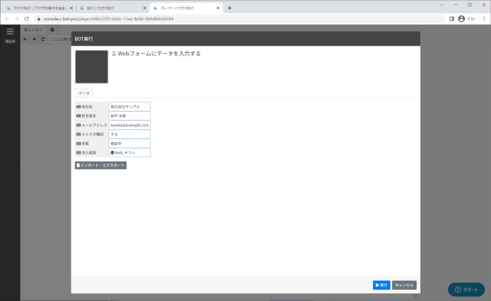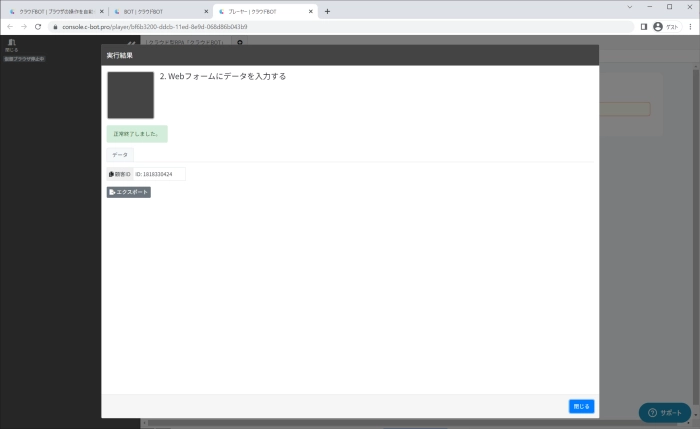 作成したBOTを選択し、実行画面からBOTを実行します。