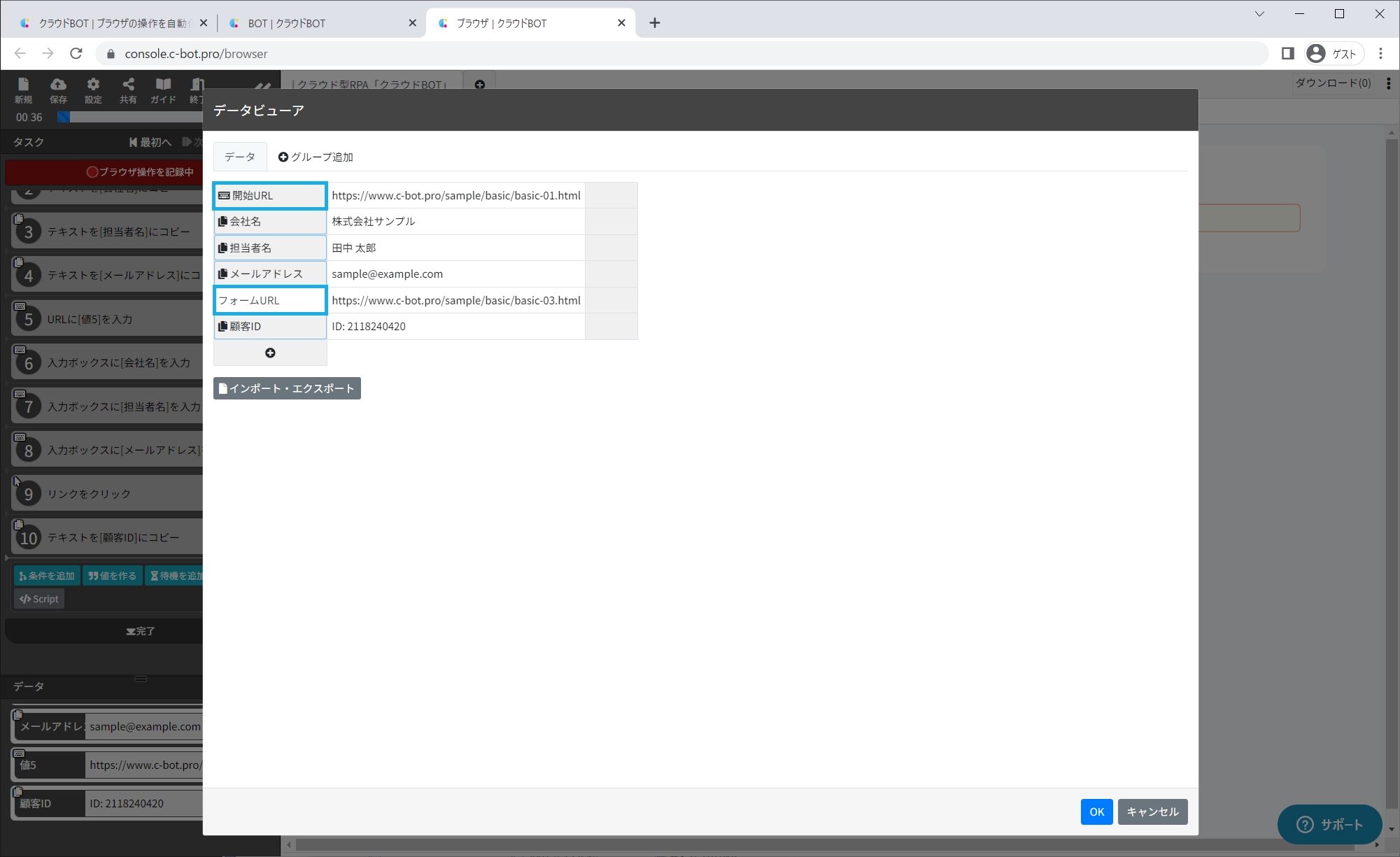 ※クラウドBOTの基本的な操作につきましては、『基本編 - 1-1. Webページからデータを取得する (基本操作の解説を含む)』をご参照下さい。