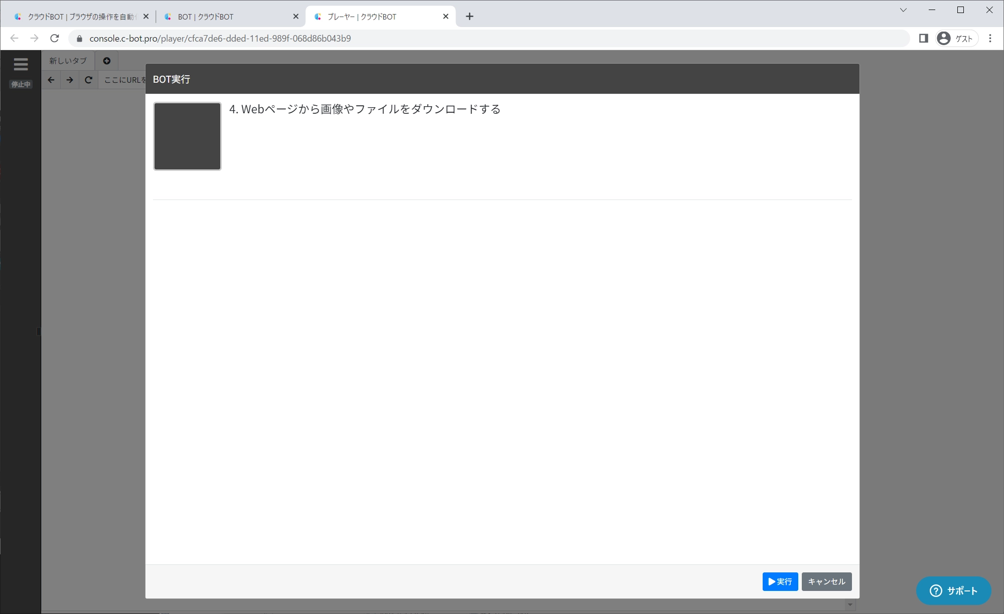 作成したBOTを選択し、実行画面からBOTを実行します。
