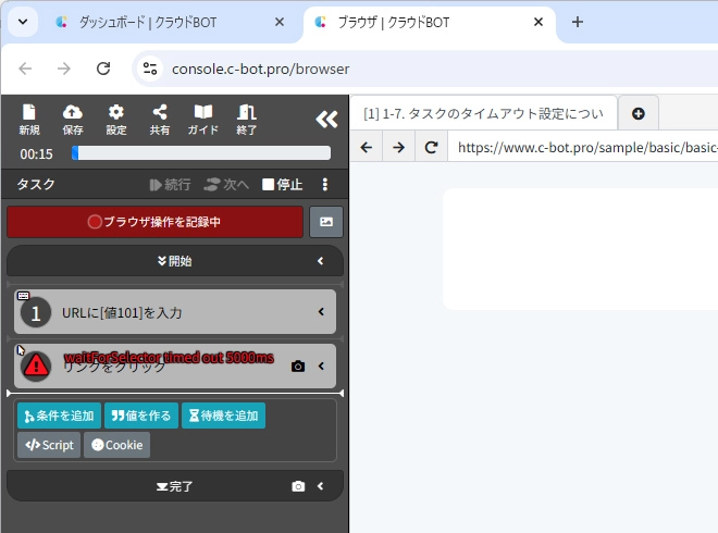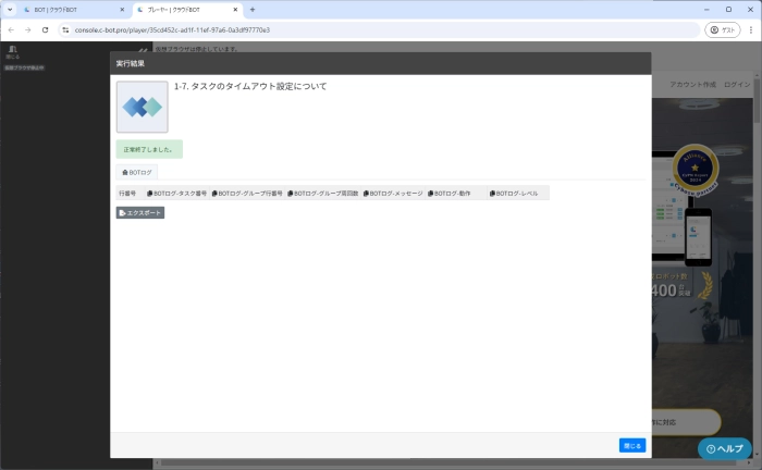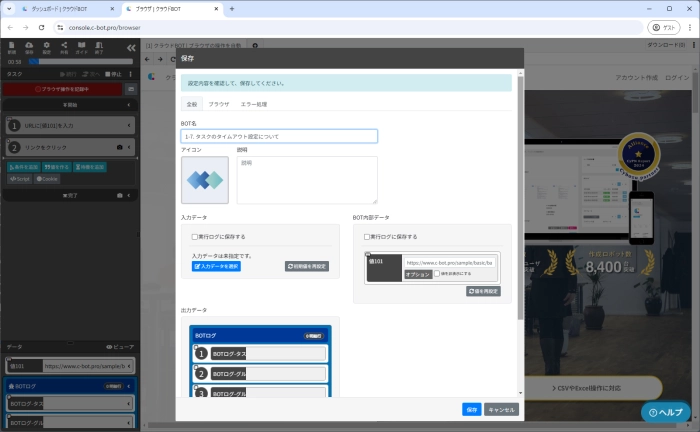 “BOT名”を1-7. タスクのタイムアウト設定についてに変更し、BOTを保存します。