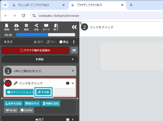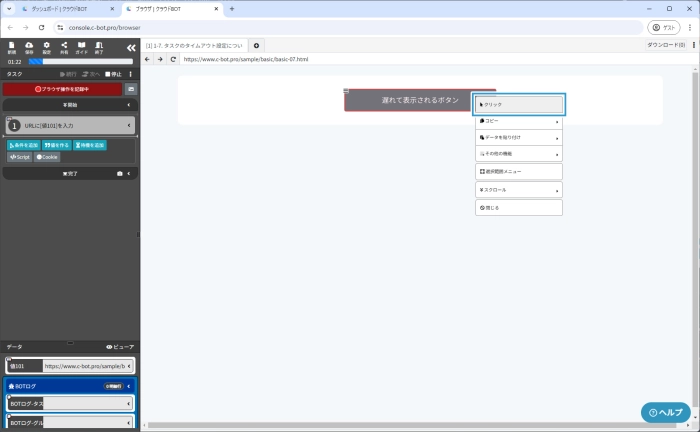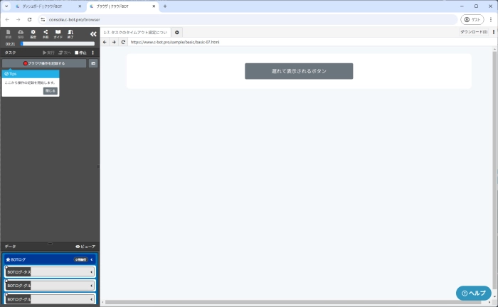 「遅れて表示されるボタン」をクリックする操作を記録します。
