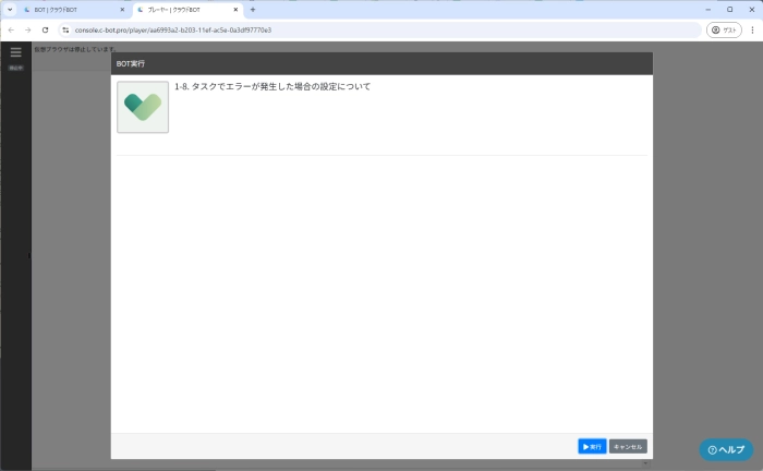 作成したBOTを選択し、実行画面からBOTを実行します。