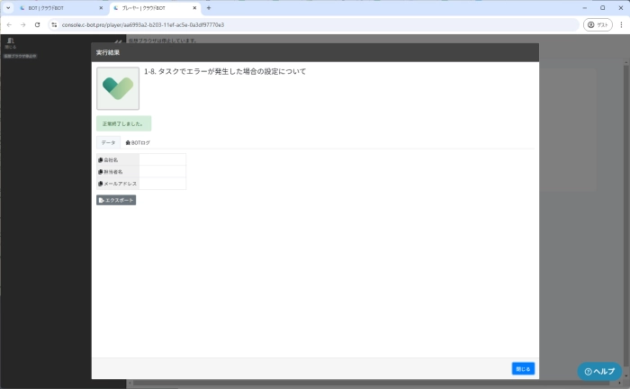 BOTは最後のタスクまで処理を完了させる事ができれば、”正常終了”となります。