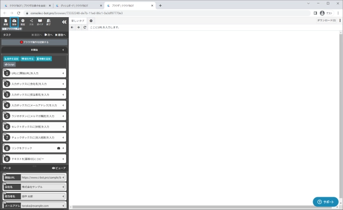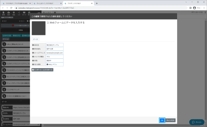 ※『1-2. Webフォームにデータを入力する』で作成したBOTを使用して解説を行います。BOTが存在しない場合は、『1-2. Webフォームにデータを入力する』を参考にBOTを作成して下さい。