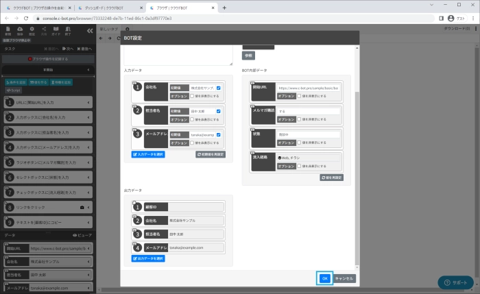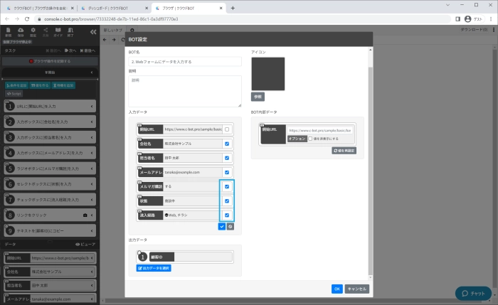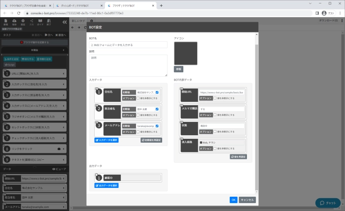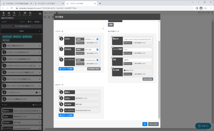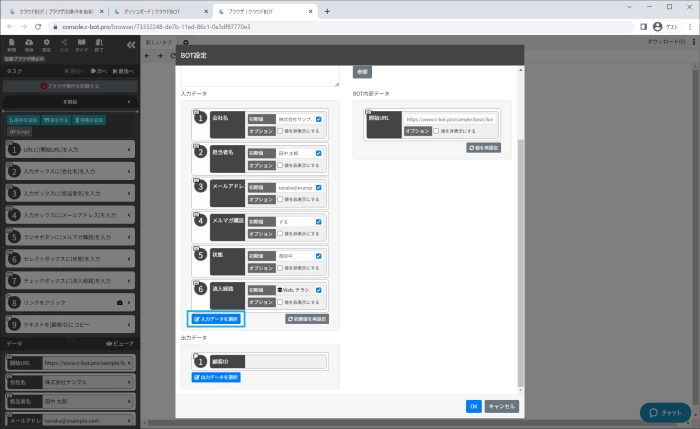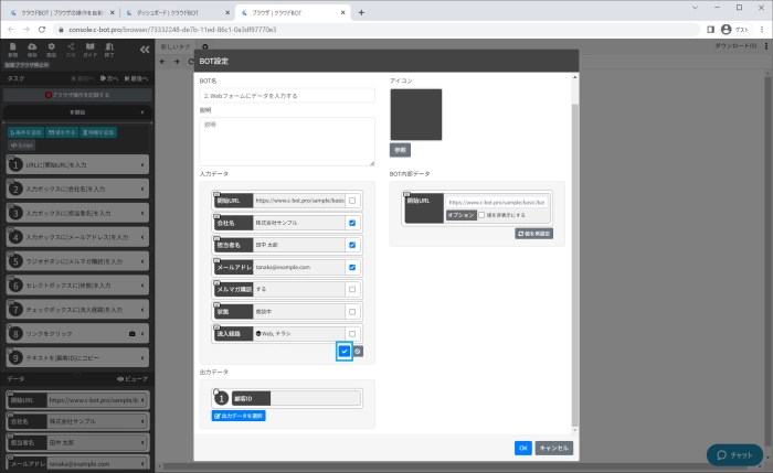 ここでは、BOTに設定されている入力データ・出力データの設定を変更する方法を説明します。
