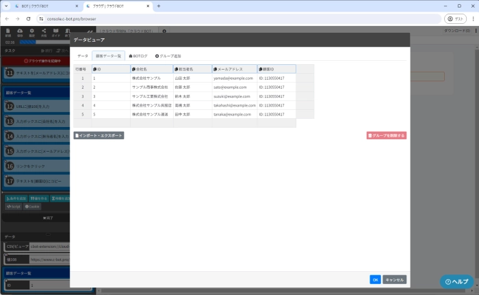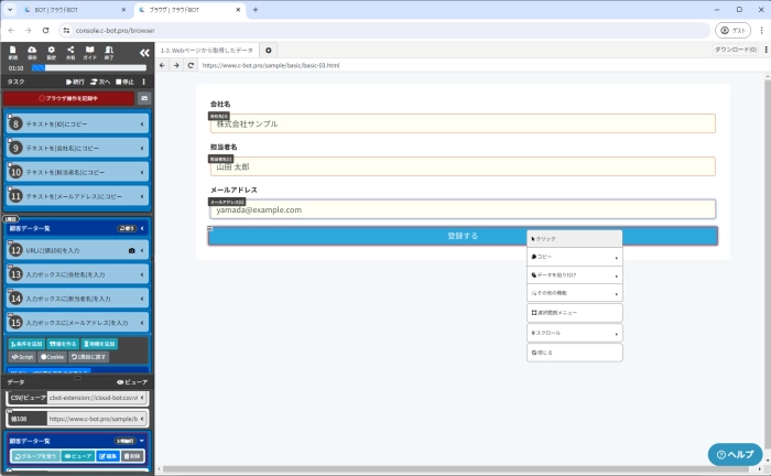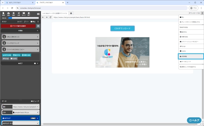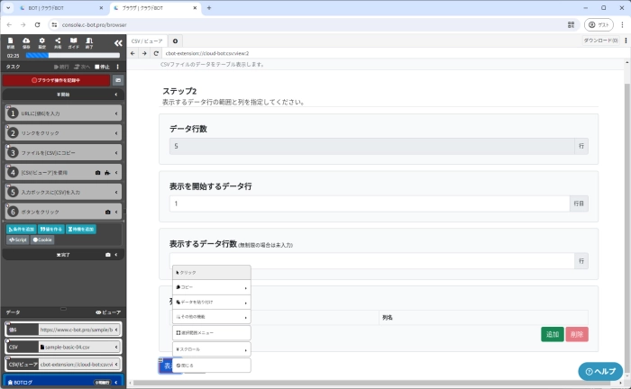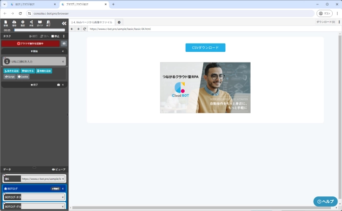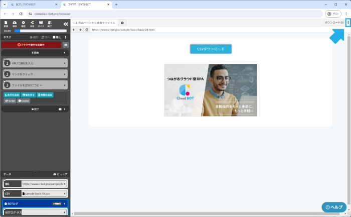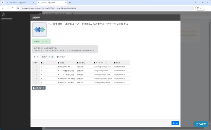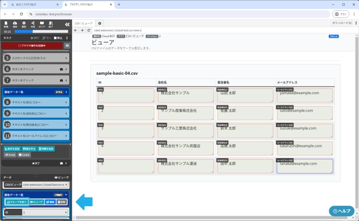 このチュートリアルでは、自動操作中にWebページからダウンロードしたCSVファイルを、拡張機能「CSV / ビューア」を使用してグループデータに変換し、繰り返し処理を行う方法について解説します。