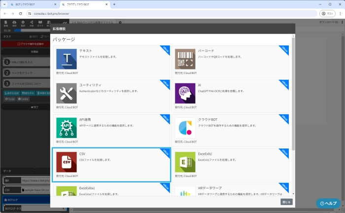 ・拡張機能[CSV / 新規作成] を使用し、自動操作中に取得したテキストからCSVファイルを作成する。