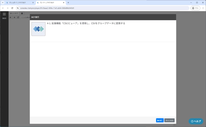 作成したBOTを選択し、実行画面からBOTを実行します。